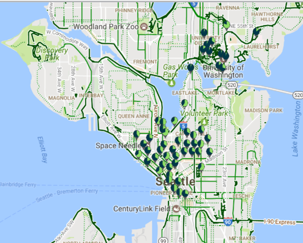 Pronto! was initially operated by Motivate, which also currently runs ten other bike-share programs in cities across North America, among them New York, Boston, Portland, Chattanooga, Toronto, Columbus, and Jersey City. Spokesperson Dani Simons told me that the company didn’t wish to speak specifically to the Seattle program, but she did confirm that accessibility and station density are key features to encouraging bike share ridership.