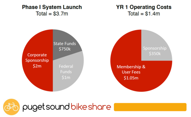 Pronto!’s original revenue projections were built around a future sponsorship: They only called for 446,000 trips and 4,000 members to pay for expenses after sponsorships. The search for that funder originally fell to a nonprofit, Puget Sound Bike Share (PSBS). Here’s how they originally envisioned costs in a 2014 proposal: